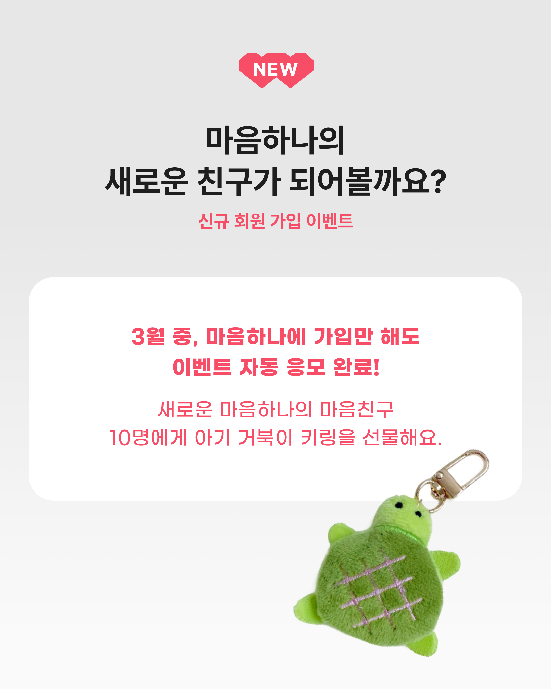 참여 방법 : 마음하나 회원 가입 시 자동 참여 (추첨)