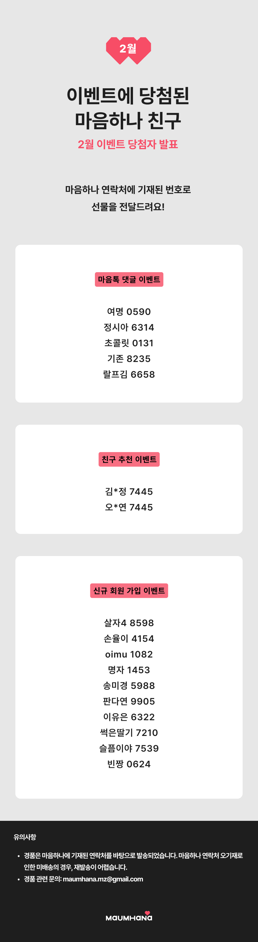 이벤트에 당첨된 마음하나 친구들 💖