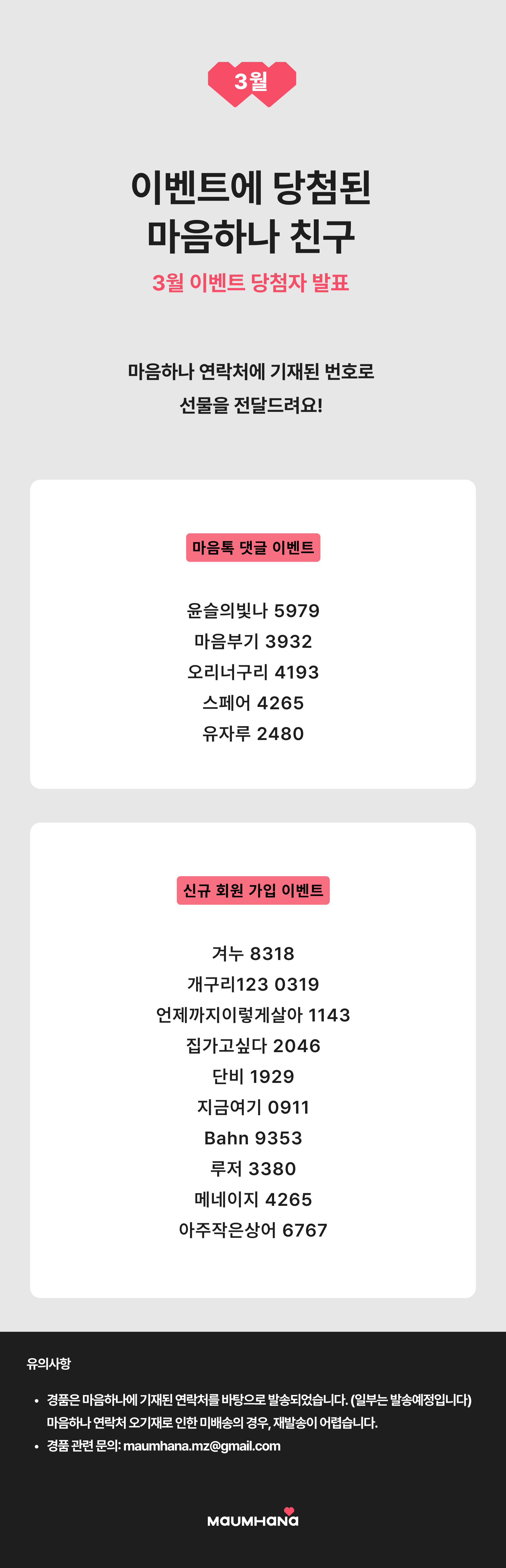 이벤트에 당첨된 마음하나 친구들 💖